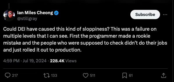 Did a "DEI Programmer" Cause the Crowdstrike Disaster?